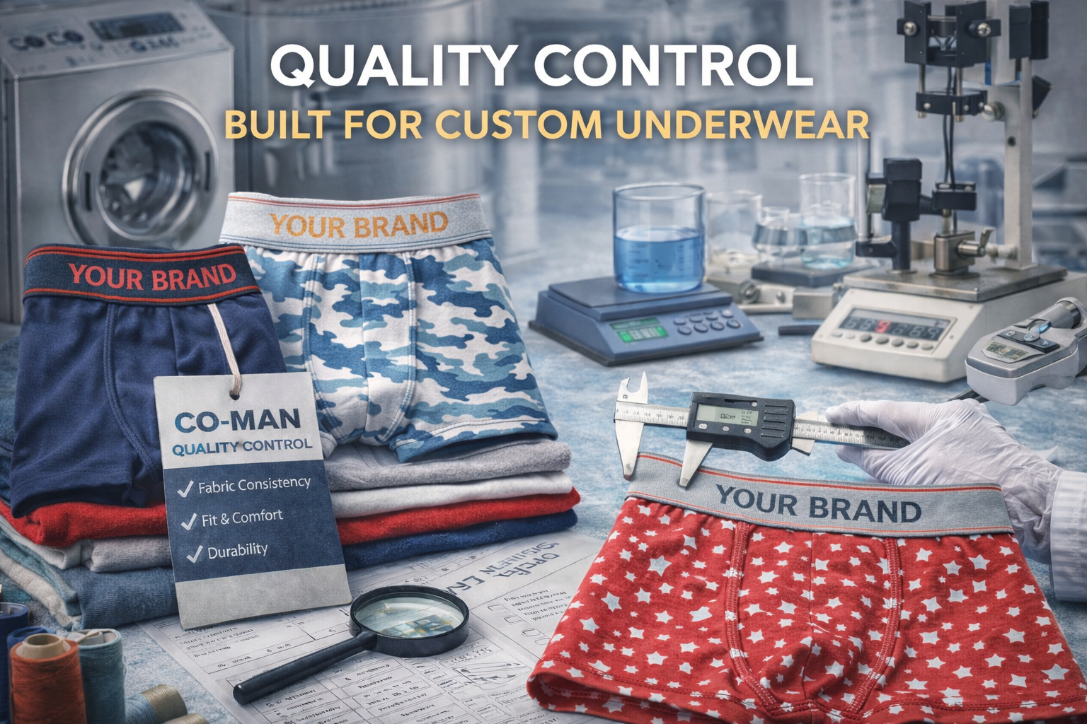In customized men’s underwear production, consistency is the true measure of quality. At CO-MAN, quality control is embedded into every stage of the OEM process—from certified fabric sourcing to final product inspection.
