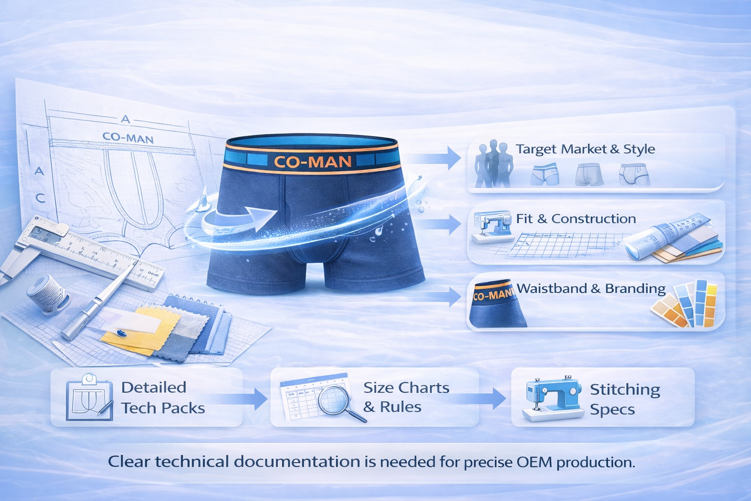 With over 18 years of underwear OEM design experience, CO-MAN’s technical teams ensure sample details translate precisely into bulk production.